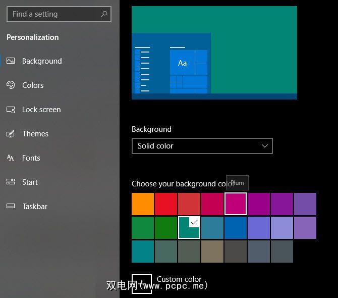尝试设置纯净的背景以避免这些干扰。转到设置>个性化>背景。在背景下拉框下,将选择更改为纯色。然后,您可以在下面选择一种颜色。