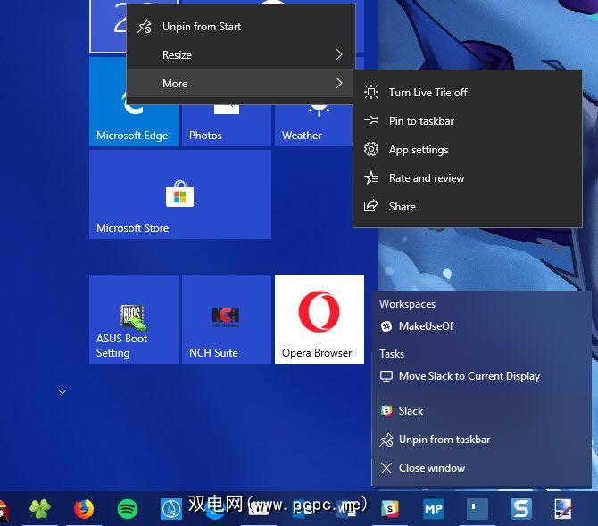 您可以在“开始"菜单上执行相同的操作-右键单击图块,然后点击从开始处取消固定删除它。如果您想保留一个图块但又不想看到它的动态内容,请选择更多>关闭实时图块以禁用该功能。