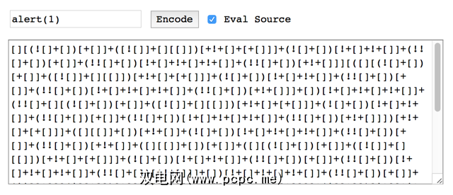 不幸的是,有人找到了解决方法。它使用一种称为JSF * ck的技术,一种仅使用六个字符[]()!+编写JavaScript代码的迷人方法。带有两个括号,两个括号,一个感叹号和一个加号,您可以创建并运行任何JavaScript代码。