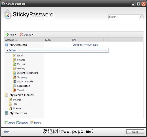 Sticky密码不仅涉及存储用户名和密码,而且该软件还可以管理个人信息地址和联系电话等详细信息,例如 Identities 。此外,安全备忘录可以填充其他信息,例如护照数据,各种许可证或您的软件许可证和Internet设置的详细信息,等等。它超越了密码管理应用程序,进入了信息管理领域。