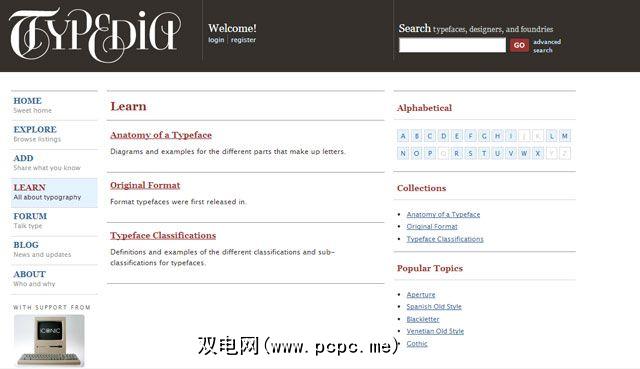 这当然不是我们在PCPC.me上首次使用设计主题的画笔。我们之前已经介绍过字体和排版应用程序,而Typedia早已提到过。值得一提的是,它更深入地研究了字体的解剖结构以及字体的几种分类。这个紧凑的网站还链接了一些字体设计者的铸造厂和简介,这些信息应该使您欣赏他们所做的工作,以及如何使用看似简单的字体来实现职业。
