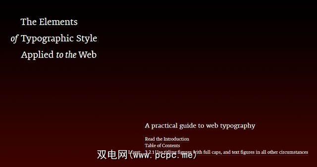 印刷术要素应用于Web的样式比此列表中的其他样式更为详细。但是您可以一口气完成它。基本上,这是罗伯特·布林赫斯特(Robert Bringhurst)的权威著作印刷风格的元素的翻版,以满足现代网络浏览器的需求。它也比其他资源更具技术性,因为它专注于HTML和CSS来呈现印刷元素。根据作者的说法,该网站正在进行中,不断增加新的信息。