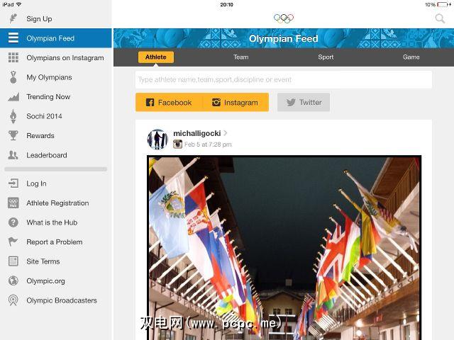 如果您想通过自己喜欢的运动员的眼睛和Instagram过滤器看到索契,那么国际奥委会的这个应用程序可以满足您的要求。您会直接从手机或平板电脑上获得来自奥林匹克运动员的Facebook,Instagram和Twitter更新,甚至可以将要关注的运动员,球队和运动入围。