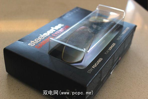 SteelSeries眼镜装在一个紧凑的纸板箱中,该纸板箱可以通过盒子的透明塑料部分完全看到它们。如您所见,SteelSeries眼镜被冠以“游戏眼镜"的商标,但与真正用于计算机工作的其他Gunnar型号并没有什么真正的区别。
