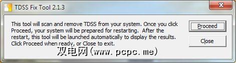 运行FixTDSS.exe。 双击 FixTDSS.exe 文件以运行它。程序初始化后,单击继续按钮开始扫描。该程序将查找潜在问题并在必要时予以解决。