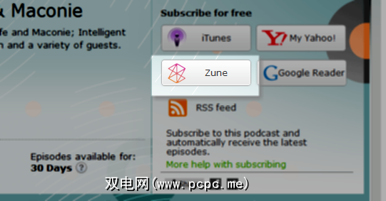 使用网站智能链接更加容易-只需在托管播客的网页上查找与众不同的Zune徽标,然后单击它即可将其添加到您的收藏中。