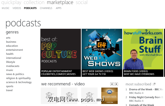 现在所需要做的就是重新打开Zune,您会在其中找到添加到“市场"菜单中的播客!