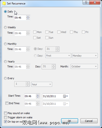 许多即时贴应用程序都可让您设置未来的提醒–这不是一个创新功能。但是在这里,Stickies再次将事情带到了一个新的高度,并允许您设置重复提醒: