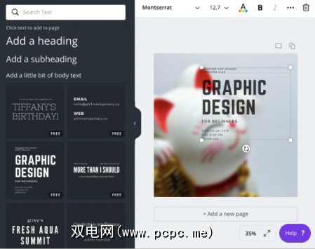 Canva的选项比Adobe Spark提供更多的自定义功能。这意味着您可以单击照片并将其添加到画布。从那里开始,添加更多内容,并根据需要安排它们。