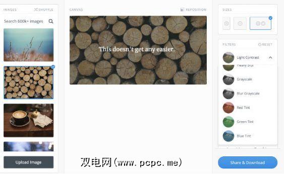 Pablo确实提供免费访问大量股票照片的功能-因此,这是等式中的第一步。文本在带有大量负空间或与“模糊"效果结合使用的照片中效果很好。