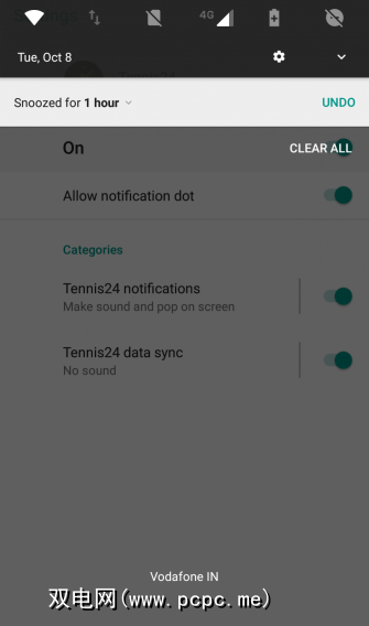 注意:。您显示的时钟图标是贪睡按钮。它不会关闭或禁用通知。相反,这可以让您在指定的时间段内暂时停止来自该应用程序的通知。