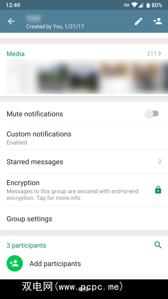 您还可以全局禁用声音或振动此处的WhatsApp。要更改特定聊天的设置,请点击顶部的联系人或群组名称,然后点击自定义通知。