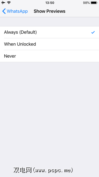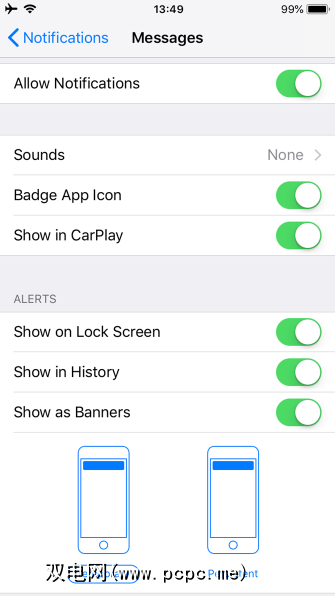 此页面还可以让您隐藏应用中的警报,以防您担心私人信息会在别人看到的地方显示。如果您愿意,还可以将警报横幅更改为 Persistent (持久性),这样它们在您将其关闭之前不会消失。