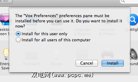 现在,您会在Mac的系统偏好设置窗口底部看到一个新按钮。单击它,您可以控制现在将控制Vox的按钮: