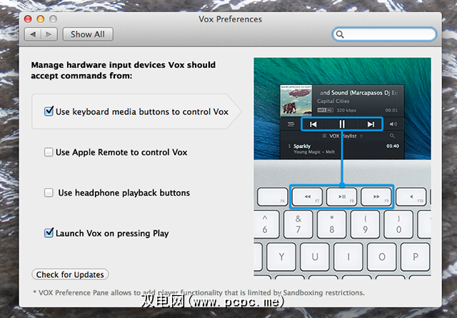 我们已经向您展示了阻止iTunes干扰Mac媒体密钥有多么困难,因此仅出于这个原因,Vox和此首选项窗格就值得一看。如果您想抛弃Apple的默认媒体播放器,但又不想键入您不了解的命令来禁用“播放"按钮,则可以轻松启动它。 Vox及其首选项窗格使此过程变得简单。