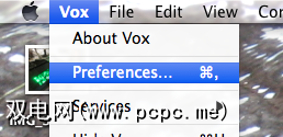 安装并运行后,从菜单栏中打开Vox首选项: