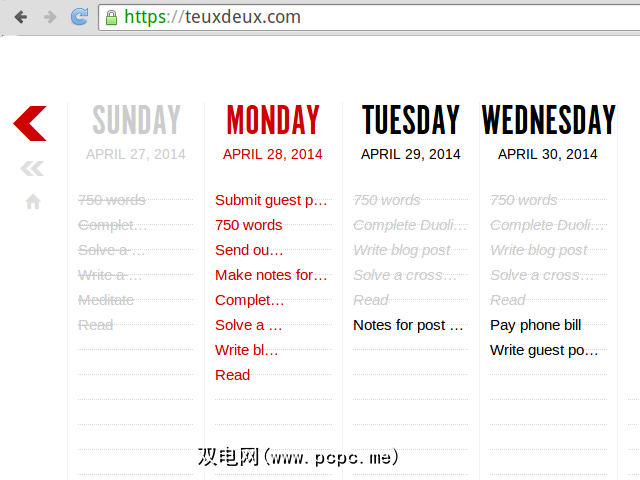 我们在2011年回顾了TeuxDeux。此后,它经历了一些有趣的变化,但一直保持简单,一如既往的美。它是此综述中功能最丰富的应用程序,需要每周处理待办事项列表。