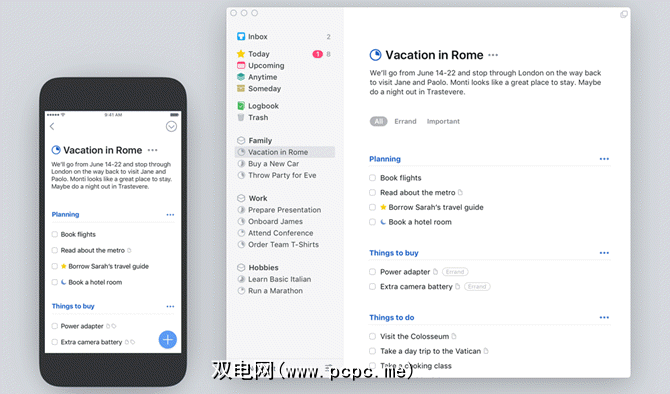 Things 3是市场上设计最完善的待办事项列表应用程序之一。 Things 3以其反应性设计和一系列功能而生机勃勃。它已成为组织任务的好方法,赢得了许多Mac和iOS用户的青睐。具备实施GTD之类的功能,这是提高个人生产力的理想工具。如果您是Mac用户,请务必检查一下Things与OmniFocus的比较。