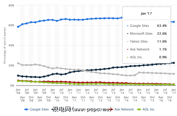 Google的功能强大吗?截至2017年1月,Google在全美63%的市场中提供了强大的动力搜索,无与伦比的访问我们的浏览习惯等等。此外,Google会跟踪您的每次搜索,以建立单独的广告资料。搜索巨人对您的浏览习惯的了解比您想象的要多。