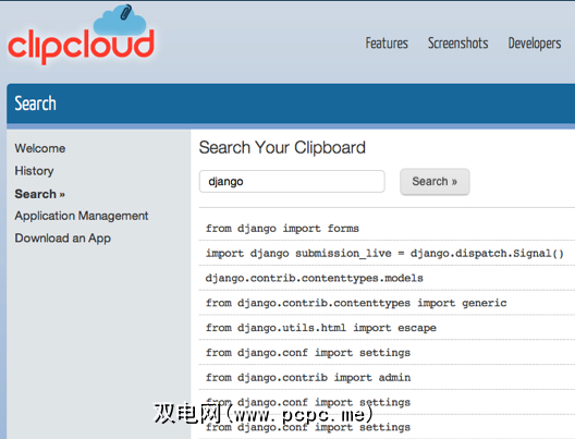 ClipCloud是一个简单的Web服务,可让您将剪贴板无缝存储在云中。该应用程序会为您记住所有内容,您以后可以轻松地搜索剪贴板历史记录以查找项目。
