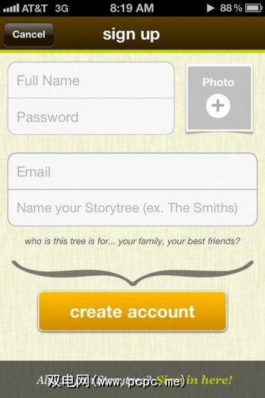与任何iPhone应用程序一样,您需要进入iTunes商店并下载它。您可以单击此方便的链接,或者直接在设备上搜索“ storytree"以将免费的应用程序下载到您的设备。是什么然后它将要求您创建一个免费帐户。您将需要提供姓名,电子邮件地址(无需验证)和故事树的名称。完成后,单击“提交",您将转到StoryTree主页。