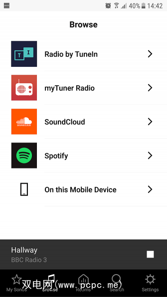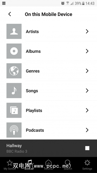 您还可以使用Sonos扬声器播放保存在其中一台设备上的音乐。例如,如果您的手机上保存了音乐,并且想要通过扬声器播放高品质的音乐,这将非常方便。为此,请在具有您要播放的音乐的设备上打开Sonos应用程序,然后转到底部菜单中的浏览选项。