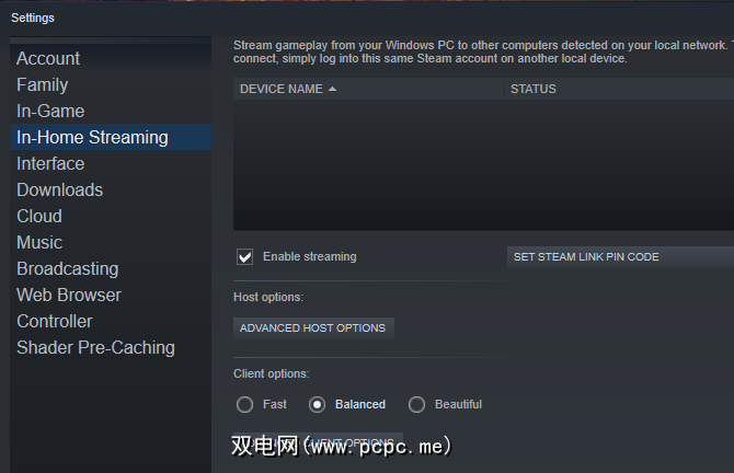 更新后,转到查看>设置,然后选择家庭流式传输。在此处,选中启用流式传输,并确保将客户端选项按钮设置为平衡。 (您可以稍后更改此设置以提高性能。)