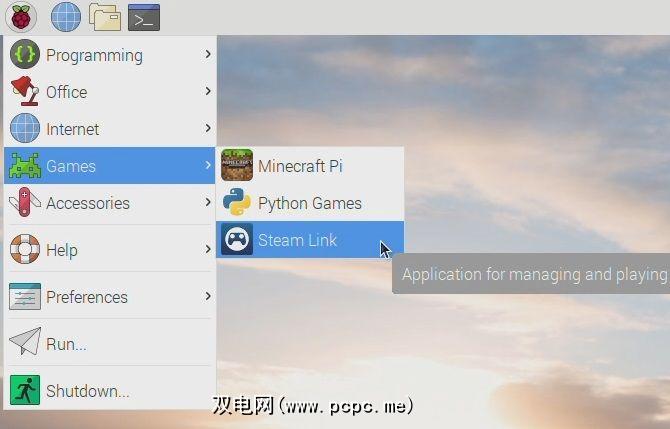 要启动在Steam链接软件上,打开Raspberry Pi上的菜单>游戏> Steam链接。