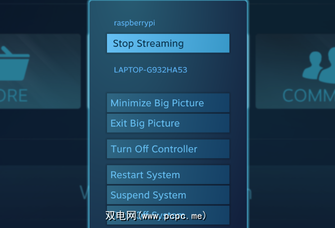 完成后,单击Steam中的电源按钮,然后单击“停止流式播放"。