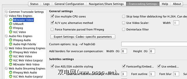 在计算机上的PS3 Media Server下,您会找到一个标题为 Transcoding Settings 的标签与每个这些转码选项相对应。您需要摆弄各种东西才能按照自己的方式进行设置,但是,通过一些调整,您可以轻松地将大型视频缩放回旧设备,或者执行其他操作,例如添加边框以补偿过扫描。