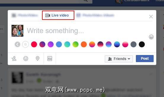 点击进入状态更新框,点击实时视频,然后为视频命名。如果需要,可以在视频中为Facebook朋友加标签,或者使用屏幕左下方的按钮设置心情。您可以选择在右下角看到视频的人。