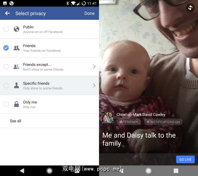 您可以选择指定观众。这是帖子隐私设置的Facebook Live版本。您可以指定朋友,公开或特定个人。您甚至可以将其流式传输给自己(尽管我们不确定为什么会这样做)!