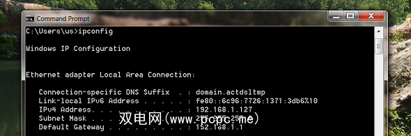 您还将需要您计算机的网络IP地址。如果您不知道这是什么,不用担心。只需打开命令提示符并键入“ ipconfig "。按Enter键,您将找到您的本地IP,如下所示: