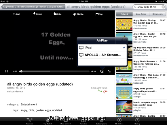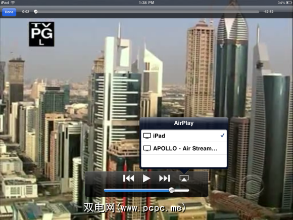 要流式传输视频,请在iPad上启动YouTube或视频(这不适用于任何其他视频播放器)。现在,您将在视频控件旁边看到AirPlay图标。现在,共享wi-fi上安装了程序的任何计算机都应出现在列表中。选择您要向其流式传输视频的计算机。