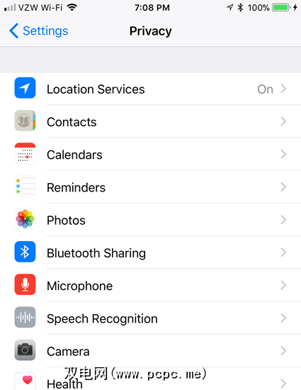 转到设置>隐私。列出了可以使用的功能和数据。点击您要禁止某些应用访问的功能。