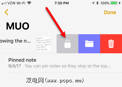 如果通过分别锁定私有和敏感信息在Notes中存储它们。现在,在iOS 11中更容易锁定笔记。只需在列表中的笔记上向左滑动,点击锁定图标,然后输入密码即可。该密码应与您的Apple ID密码和设备上的密码不同。