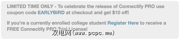 非学生可以使用EARLYBIRD代码从Connectify Pro许可中收取10美元。