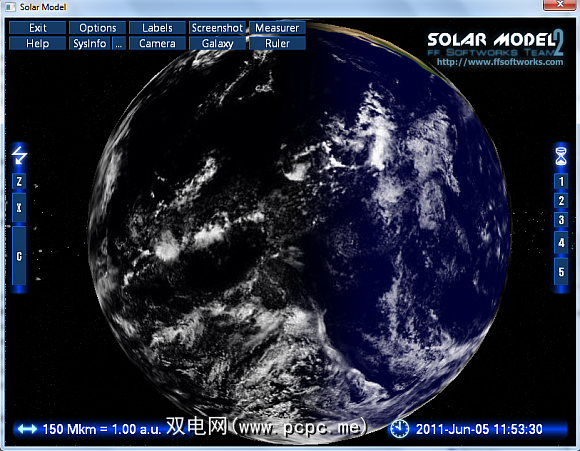 源应用程序足够有用,可用于中小学生的科学课。首次启动该应用程序后,该程序的图形质量很快变得显而易见。您会看到一个巨大的地球模型。如果您的计算机图形卡可以处理它,则地球将实时旋转(基于屏幕右下角的时钟)。如果看不到它在移动,请移动窗口,然后应该会看到地球的位置更新。