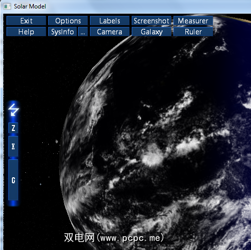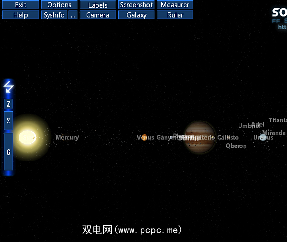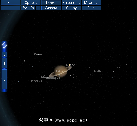 此太阳系模型软件中可用的所有工具都位于窗口左上方的菜单系统中。您经常使用的重要标签是用于切换行星标签的“标签",相机视图切换按钮以及非常酷的测量器,这些将在下面介绍。