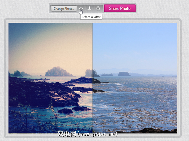 您一次只能应用一个滤镜,因此应用一个滤镜会导致丢失另一个。应用滤镜后也无法撤消它,但是由于任何新滤镜仍然会应用到原始照片,因此没关系。您随时可以点击顶部的“ Before&After"按钮,以查看当前版本与原始版本之间的区别。