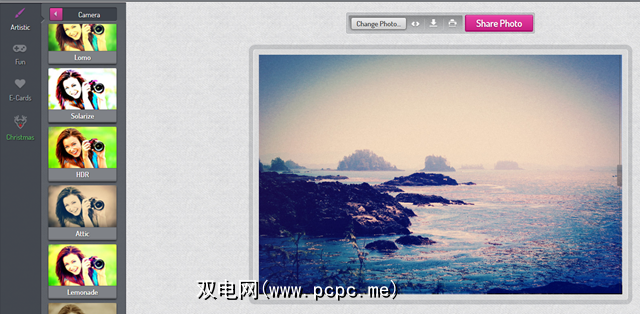 要开始使用PhotoMania,从您的计算机上传照片,从Facebook抓取照片或使用网络摄像头拍摄照片。然后,您可以在艺术滤镜(素描,魔术,绘画,照相机等),有趣的滤镜(幻觉,杂志,绘画,,甚至是 tech < / em>),电子贺卡过滤器(可帮助您根据自己的照片创建快速贺卡)以及专门用于圣诞节的东西的圣诞节部分。