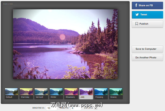除了那些基本的滤镜之外,这些滤镜看起来都非常自然且悠闲,您还可以手动控制照片的亮度和小插图。在上载照片或使用网络摄像头捕捉照片后几秒钟内,您便可以获得增强版本。
