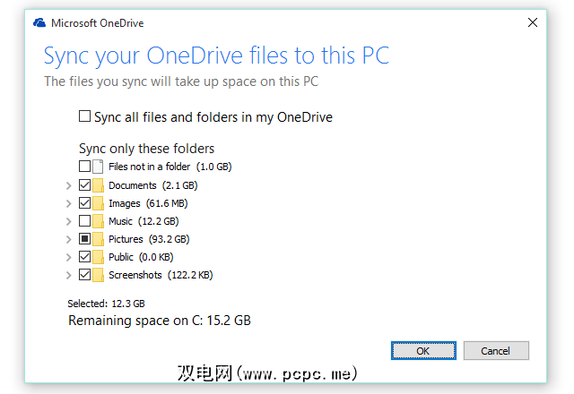 在OneDrive设置的选择文件夹选项卡中,您可以实际查看存储在OneDrive上的所有文件夹及其大小。虽然看不到单个文件,但如果文件夹井井有条,您就会知道在哪里可以找到所需的文件。这样,您可以取消选择一个文件夹并创建空间来同步另一个文件夹。