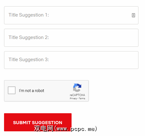 该过程很简单,只需访问help.netflix.com/en/titlerequest并填写您的三个建议的标题。当您对输入感到满意时,请完成验证码,然后单击提交建议。