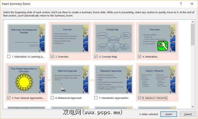 PowerPoint 2016中的一项新功能称为“摘要缩放",可让您跳入和跳出不同的内容幻灯片并创建令人兴奋的变化。