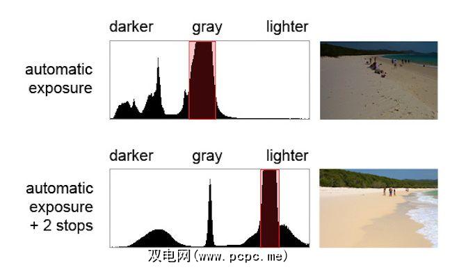 基本上,当外面很亮时,请移动直方图,以便将值集中在右侧。这样做的目的是使图像比正常的明亮,因为您的相机会以其他方式补偿光线。