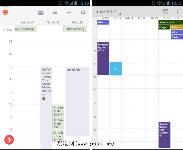 这就是为什么Sunrise的Android和桌面版本如此出色的原因.iOS界面比Apple的标准日历应用程序要好得多,这要归功于更简单的界面,柔和的色彩和精心设计的图标Android版本的Sunrise(如左下方所示)在设计方面同样超越了标准的Android日历(如右图所示)。