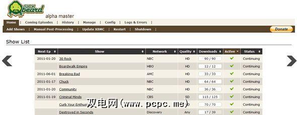 与XBMC很好地集成,SickBeard将寻找您喜欢的节目的新集,并从指定的NZB来源下载和USENET提供程序,然后将它们添加到添加了所有正确元数据的库中。虽然我们不容忍盗版,但如果您是喜欢免费观看最新节目的人,那么您可能会想要使用此工具。
