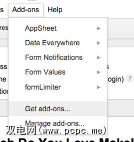 正如我所说,Google Forms有点不足赞赏,并同时充满潜力。假设Google不会像其他许多有前途的特性那样让它枯萎和死亡,则附加组件部分肯定会引起关注。