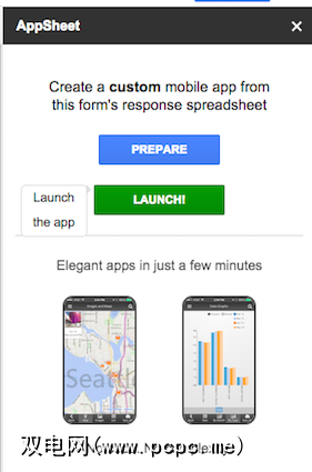 这个非常酷的加载项使您有机会构建基于您的Google表单的自定义移动应用。它非常快速,非常容易,并且完全不需要编写任何代码。